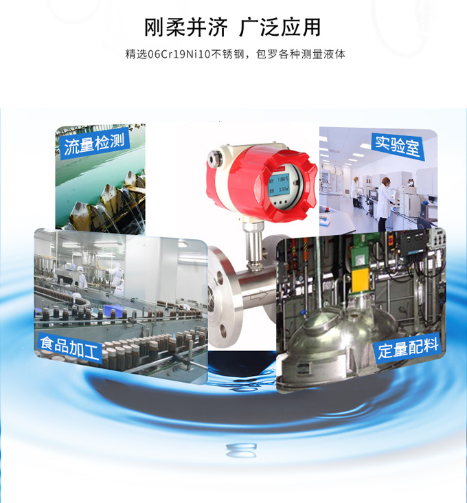 聯測LWGY-SIN液體渦輪流量計是一種速度式儀表,它具有準確度高、重復性好、結構簡單、壓力損失小、維修方便等優點,用于測量封閉管道中低粘度液體的體積流量。在石油、化工、冶金、供水、造紙等行業中具有廣泛的應用。