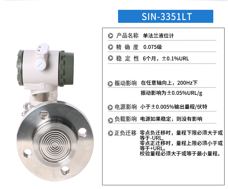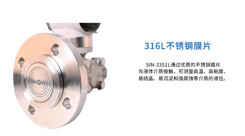 SIN-3051LT型單法蘭差壓液位變送器是我公司引進國外先進技術和設備生產的新型變送器,關鍵原材料,元器件和零部件均源自進口,整機經過嚴格組裝和測試,該產品具有設計原理先進、品種規格齊全、安裝使用簡便等特點。由于該機型外觀上融合了目前流行,并被廣泛使用的兩種變送器(羅斯蒙特3051與橫河EJA)的結構優點,讓使用者有耳目一新的感覺,同時與傳統的系列產品在安裝上可直接換,有很強的通用性和替代能力。為適合國內自動化水平的不斷提高和發展,該系列產品除設計小巧精致外,更推出具有HART現場總線協議的智能化功能。