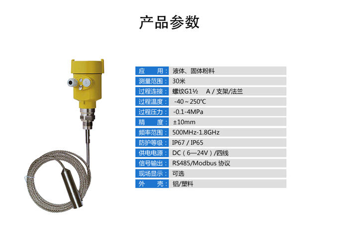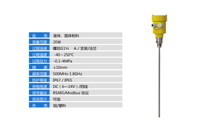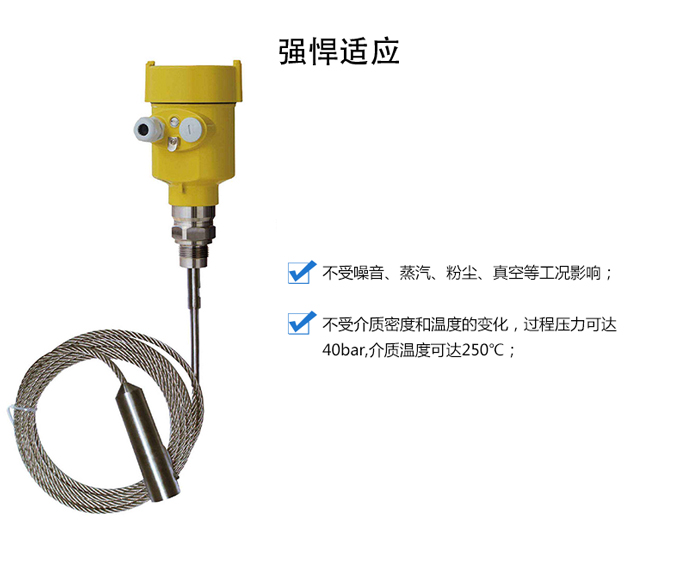 導波雷達是基于時間行程原理的測量儀表,雷達波以光速運行,運行時間可以通過電子部件被轉換成物位信號。探頭發出高頻脈沖并沿纜式或桿式探頭傳播,當脈沖遇到物料表面時反射回來被儀表內的接收器接收,并將距離信號轉化為物位信號。