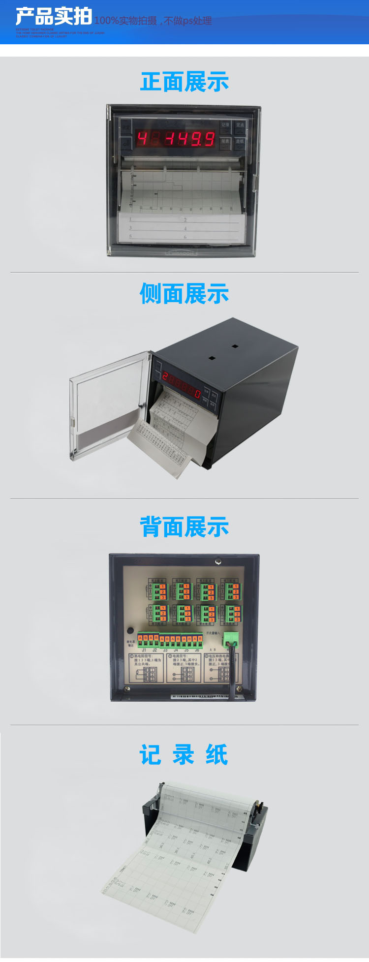 SIN-R1000有紙溫度記錄儀最多具有8路輸入通道,2路模擬量輸出,通道之間采用點點隔離;均可直接選擇接收多種熱電偶、熱電阻、壓力變送器、電壓、電流信號,并可對被測信號進行數字顯示及進行趨勢記錄和數字記錄,能在本身打印的120mm寬的紙格上同時記錄刻度值、時間及每一個信號的曲線,并將通道號印在各通道的軌跡旁。打印記錄功能采用進口固定式熱敏頭,無筆墨消耗,無筆位誤差,抗震動。
